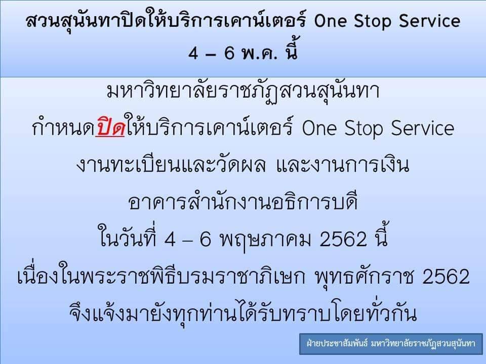 > สวนสุนันทาปิดให้บริการเคาเตอร์ ONE STOP SERVICE วันที่ 4-6 พฤษภาคม นี้