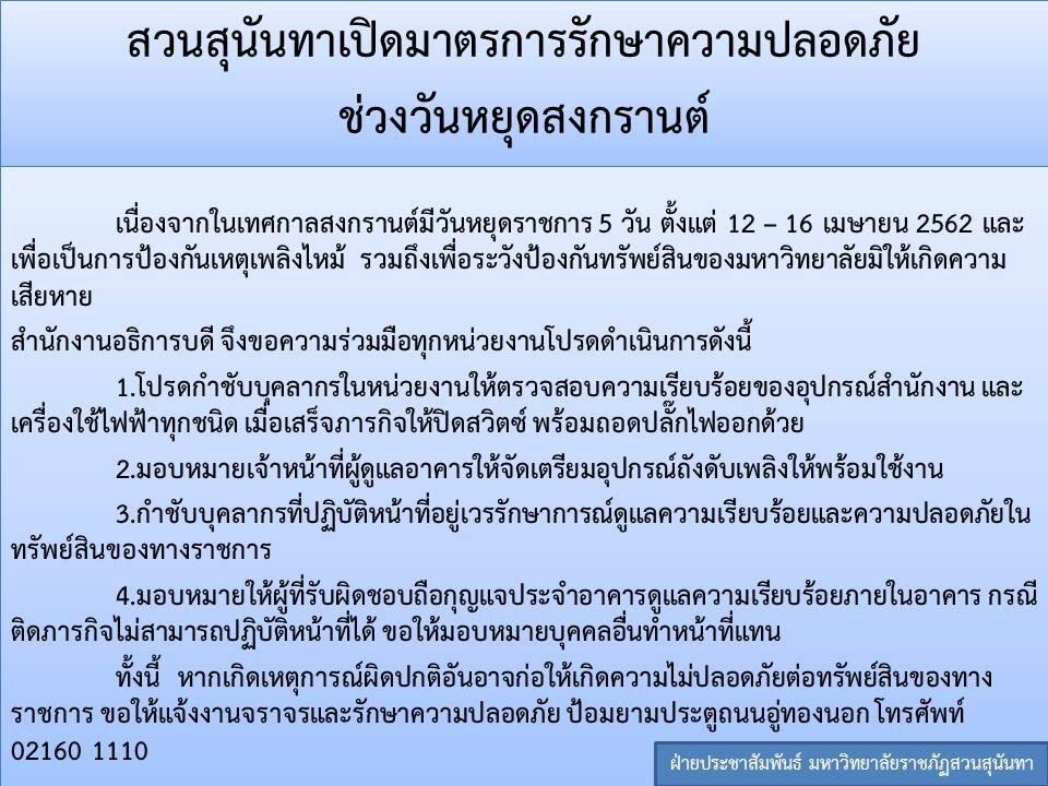 > มาตรการรักษาความปลอดภัยช่วงวันหยุดสงกรานต์